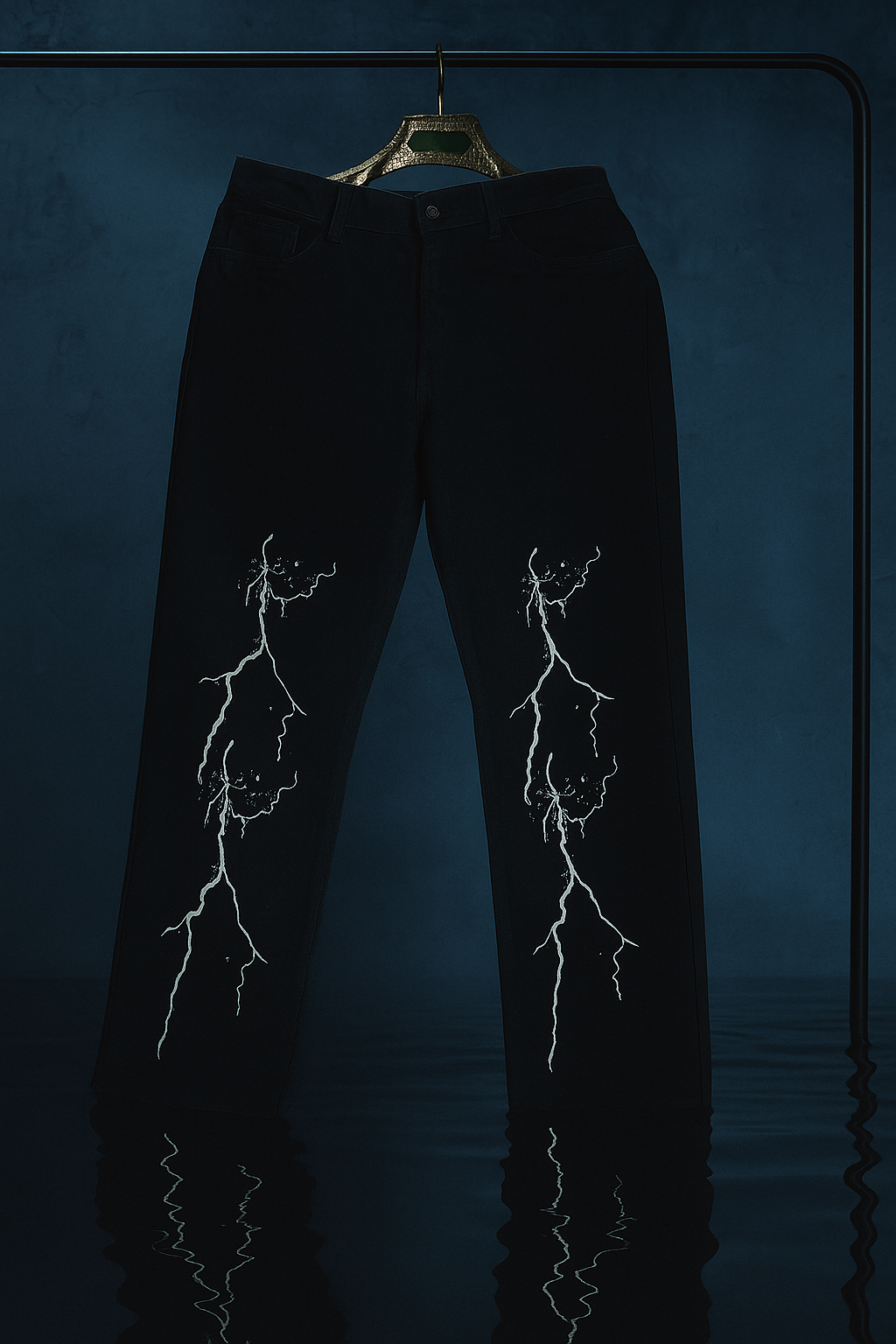 Men's Cool Aesthetic Thunder Lightning Printed Straight Fit Baggy Loose Jeans